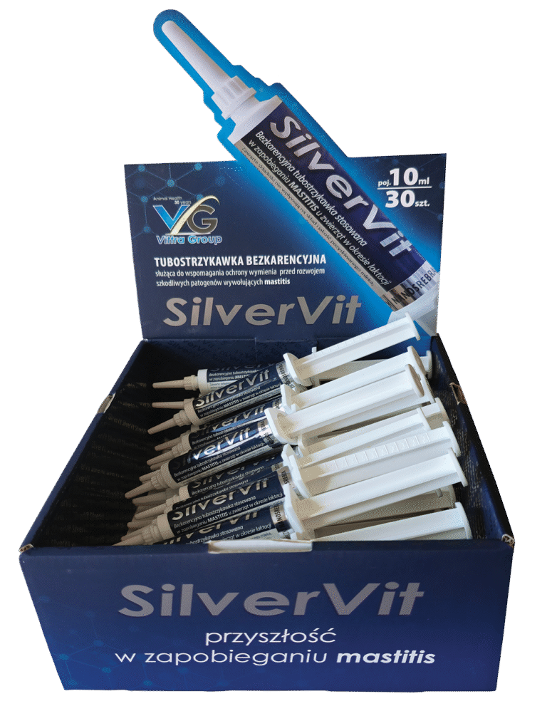 SilverVit to nowoczesny preparat w formie tubostrzykawki, przeznaczony do wspomagania ochrony wymienia przed patogenami wywołującymi mastitis. Dzięki zaawansowanej formule opartej na synergii składników aktywnych działa wielokierunkowo, ograniczając rozwój drobnoustrojów i wspierając zdrowotność stada – bez konieczności wstrzymywania mleka.