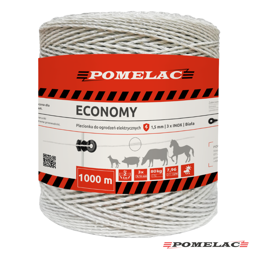 Pomelac ECO Biała 1000m to uniwersalna plecionka do ogrodzeń elektrycznych przeznaczona do budowy długich i rozbudowanych instalacji pastwiskowych. Dzięki długości 1000 metrów pozwala na wykonanie dużych ogrodzeń bez konieczności częstego łączenia przewodów, co przekłada się na lepszą przewodność i wyższą skuteczność działania systemu.